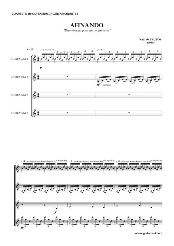 Tuning “Divertiment by guitar quartet” is a work based on the guitar’s own tuning (E, B, G, D, A) using the guitar’s own technical resources such as ligatures, arpeggios, harmonics, … thus achieving a very characteristic sound result of the instrument.